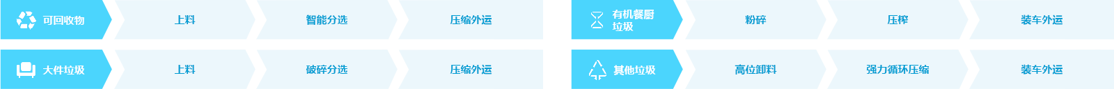 適用領域:居民小區、園區內的可回收物、大件、有機餐廚、其他垃圾等。