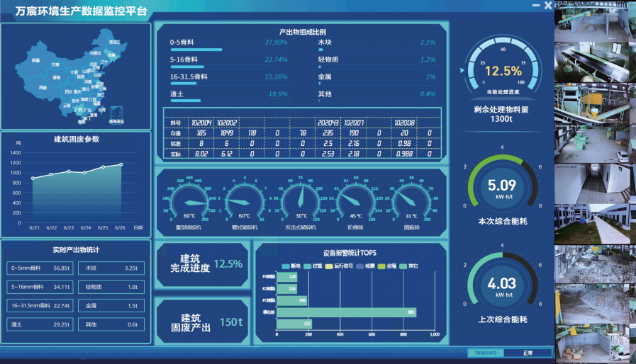 成套產線依托移動互聯網+物聯網技術,采用中央集成控制,對人、機、物三者進行可視化、數據化、信息化、智能化的全面管理。通過實時監控、GPS定位、實時數據傳輸以及報警系統等在線數據統計,進行綜合指揮調度,通過大數據統計與縱向比較,可實現不同層級機構垃圾分類信息直報與智慧大數據匯總,確保產線運行穩定,確保安全生產。本工廠所有采集的大數據可以為智慧化城市管理提供有力的數據支撐,為垃圾分類管理提供助力。本中央控制系統已預留5G接口,為科技的發展預留空間。