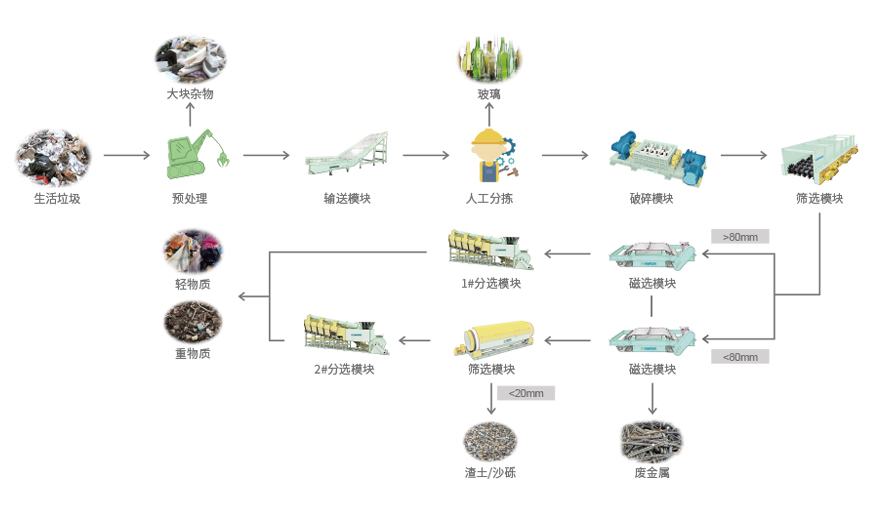 Household waste can produce muck, gravel, light matter and waste meta, through resource disposal technology.